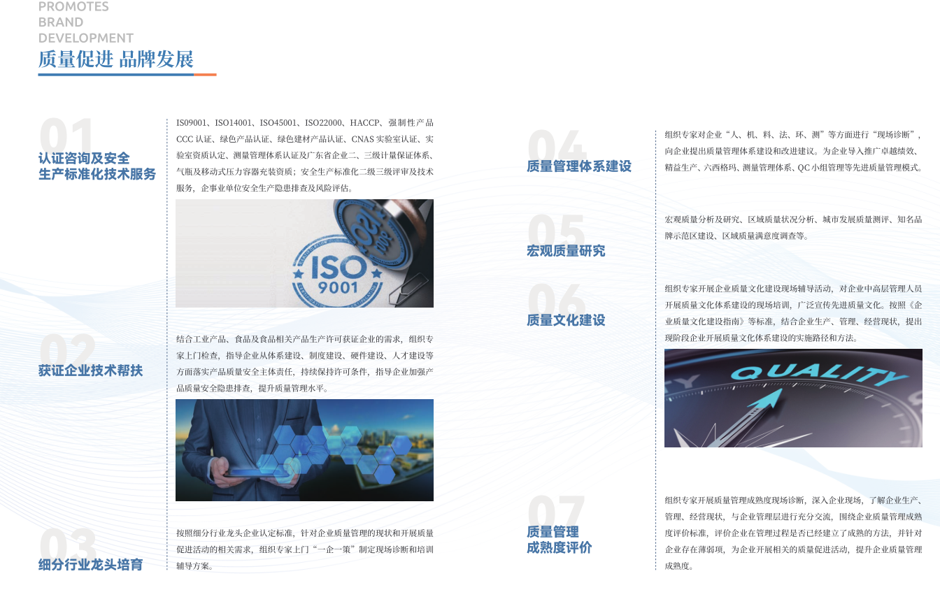 目前具有能源检测实验室CMA资质认定证书、通过ISO9001质量管理体系认证,是全国轮椅车标准化分技术委员会秘书处承担单位、全国标准化良好行为评价机构(1-5A),为广东省中小企业服务示范单位、广东省中小企业公共(技术)服务示范平台、广东省冶金及工贸企业安全生产标准化二级企业评审单位、广东省节能技术服务单位、广东省清洁生产技术服务单位、粤港清洁生产伙伴计划环境技术服务供应商、广东省第三方节能量审核机构、广东省锅炉能效测试服务机构、广东省固定资产项目节能评估机构、广东省资源综合利用产品工艺质量检验检测机构、广东省工业固体废物资源综合利用评价机构、佛山市医药行业专业技术中级职称评审委员会办公室。