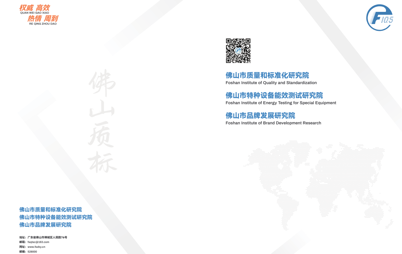 佛山市质量和标准化研究院,加挂佛山市特种设备能效测试研究院、佛山市品牌发展研究院牌子,是经市人民政府批准的、市市场监督管理局举办的登记设立事业单位。是一家围绕市场监管领域技术支撑为核心,主要从事质量促进、标准技术、品牌发展、知识产权、绿色节能等相关服务为主的综合性、权威性技术服务机构。