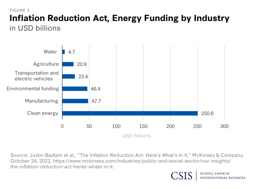 IRA共向绿色经济领域投资3700亿美元,以改善美国制造业,投资于清洁能源,以应对气候变化,并激励国内电动汽车消费,这被称为历史上最大的单笔气候支出。该法案将向清洁能源支出2506亿美元,向制造业支出477亿美元,向环境基金支出464亿美元,向交通和电动汽车支出234亿美元,向农业支出209亿美元,向水资源支出47亿美元。