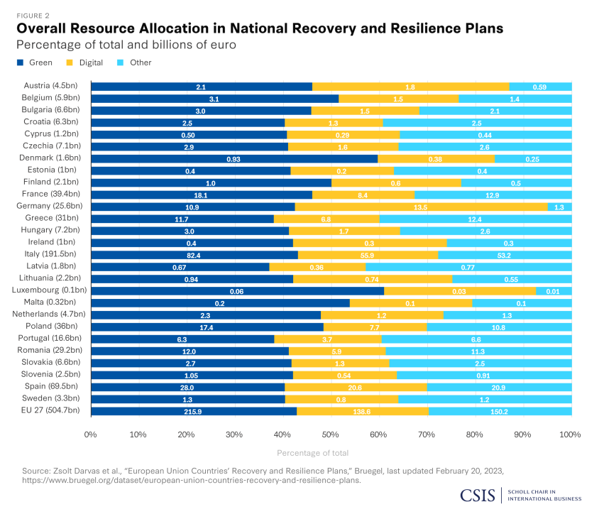 在新冠疫情的最初阶段,欧盟建立了恢复和复原力基金 (RRF),这是下一代欧盟计划的最大组成部分。RRF于2021年2月生效,2026年12月到期。RRF的六大支柱是: