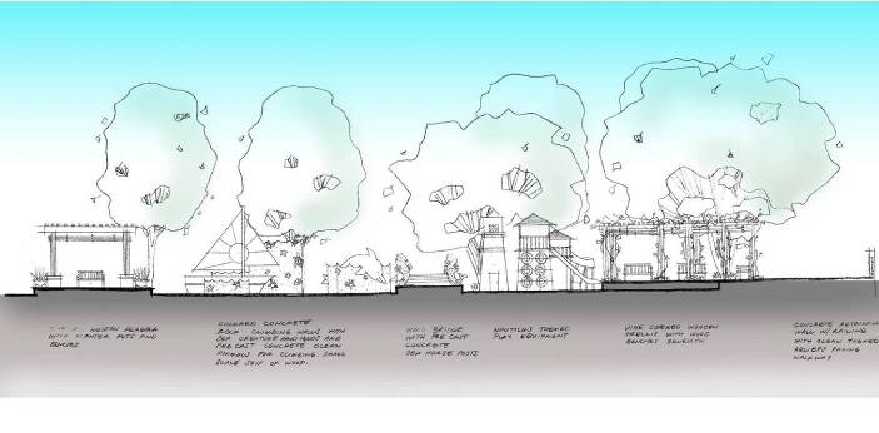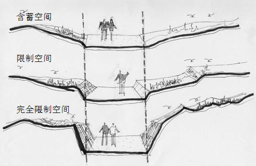 场地的竖向设计与建筑及种植的关系决定了空间的尺度感