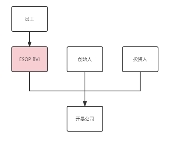 员工通常会在英属维尔京群岛等离岸地设立特殊目的公司(即“SPV”)作为员工持股平台,间接持有开曼公司股权。具体架构图如下: