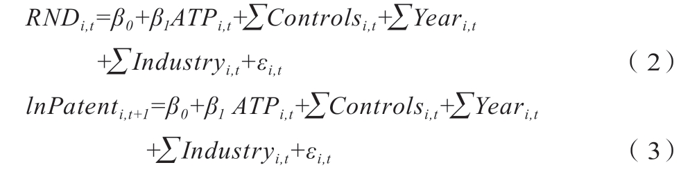 ① 在研究反收购条款与研发创新的关系时,具体回归方程为: