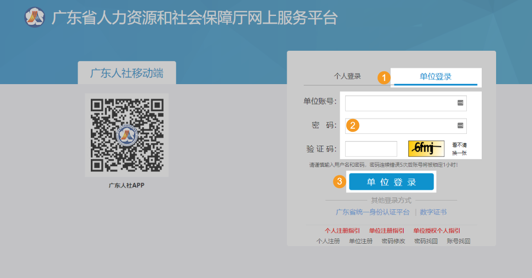 建议使用谷歌浏览器或IE9.0以上版本浏览器,未使用过广东省人力资源和社会保障厅网上服务平台的单位用户,需要先注册。
