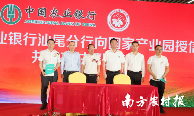 中国农业银行汕尾分行为广东省陆丰市国家现代农业产业园专属授信。