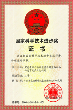 2. | 黑色食品作物资源研究及产业化利用 | 国家科技进步二等奖 | 2008 |