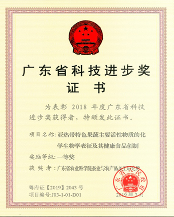 1. | 营养健康导向的亚热带果蔬设计加工关键技术及产业化 | 国家科技进步二等奖 | 2020 |