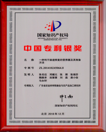 4. | 一种利于肠道修复的营养膳及其制备方法 | 中国专利银奖 | 2019 |