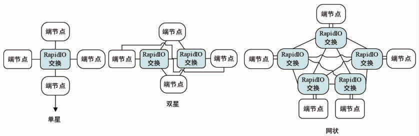 基于RapidIO交换机进行端节点间互联,可构成星状、双星、网状等网络拓扑架构,端节点间互联更加灵活,基于RapidIO交换机的网络拓扑架构如图2所示。