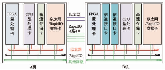 分布式处理系统中,不同的处理节点实现不同功能,多节点共同完成系统功能。其中,基于DSP,FPGA的处理节点侧重于实现信号采集与处理,基于CPU的处理节点侧重于数据信息处理,SRIO交换则实现各处理节点间的高速信息交换。