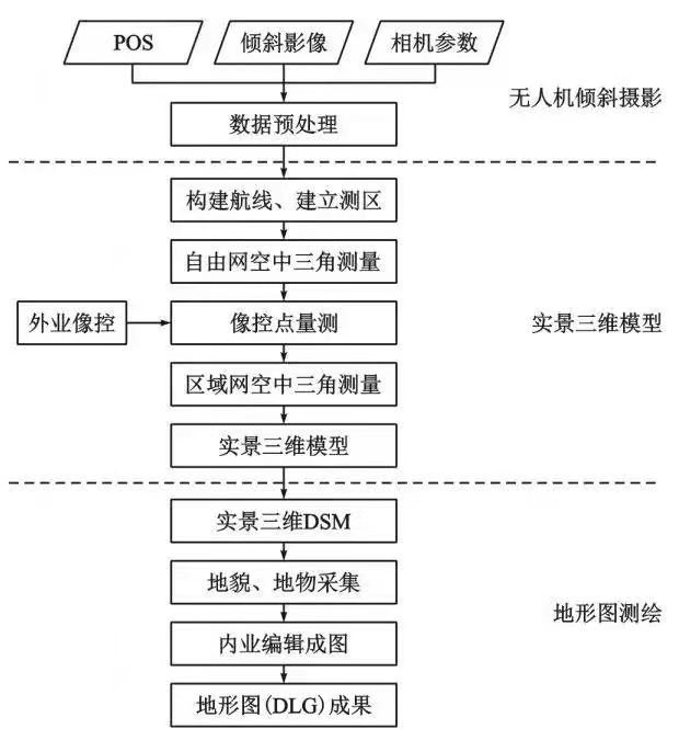 图2 无人机倾斜摄影的大比例尺地形图测绘技术路线