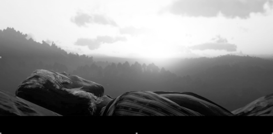 角色动画是在游戏中有着不可替代的重要位置的艺术设计,除了符合游戏的定位以外和造型设计也有很大的关联,不仅要准确地体现游戏中的特定场景,还要突出人物的性格、和情感。在《荒野大镖客2》中,游戏的背景设定为19世纪的90年代,美国西部引起了矿业开发的狂潮,蛮荒的西部世界正在向着文明城市过渡,旧世界和新世界进行着冲突。原本住在西部的牛仔们被迫融入新世界,但西部的野蛮始终不被文明世界接纳,导致这些西部团体破碎,游戏里的牛仔们,每个人走路时都是非常自信地挺直了腰板,戴着那顶醒目的帽子,时时刻刻以自己是西部牛仔为荣,一些不愿顺着时代改变成为了不法之徒,但始终热爱在大地驰骋(如图7所示)。在故事的结尾,主角亚瑟戴着那顶醒目的帽子,骑上马英勇赴死,最后躺在山上看着远处的日出,呼吸渐渐减弱(如图8所示)。这段CG动画让人无比唏嘘,曾经的西部之光已经黯淡直到消逝,而新的世界才刚刚开始。