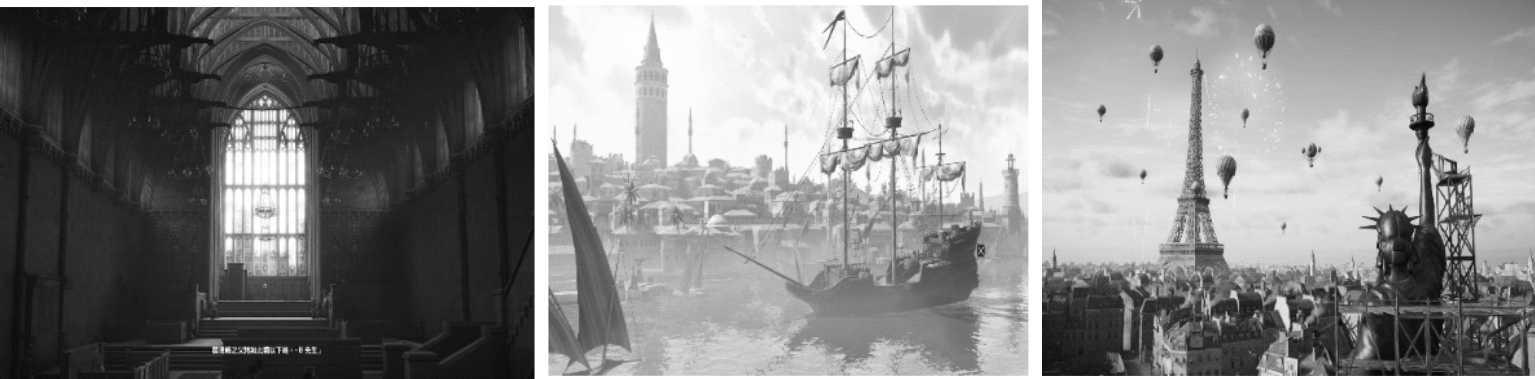 《刺客信条》系列将历史场景运用的非常好,不管是文艺复兴、美国南北战争、法国大革命还是英国维多利亚统治中期,都能将当时的当地特征展现出来,如图9所示。由这些场景玩家可以了解到那个时代的历史事件,让玩家沉浸在当地的人文气息中。利用三维场景建模在保证和现实相差不大真实地向玩家展示时代的风貌,为了贴近游戏设定的时间背景里的城市风貌,制作团队会对当地的建筑尤其是故事发生的重要地进行实景拍摄采集进行一比一建模。其中最出名的莫过于《刺客信条:大革命》中的巴黎圣母院,曾为其设计的Caroline Miousse花费2年时间还原巴黎圣母院,细节到每一块石头,如图10所示。在巴黎圣母院被烧毁之后,许多玩家就在游戏中领略巴黎圣母院的风采,时间或许可以使许多东西褪色、消失,但游戏可以使物质文化建筑永远的保留在其中。