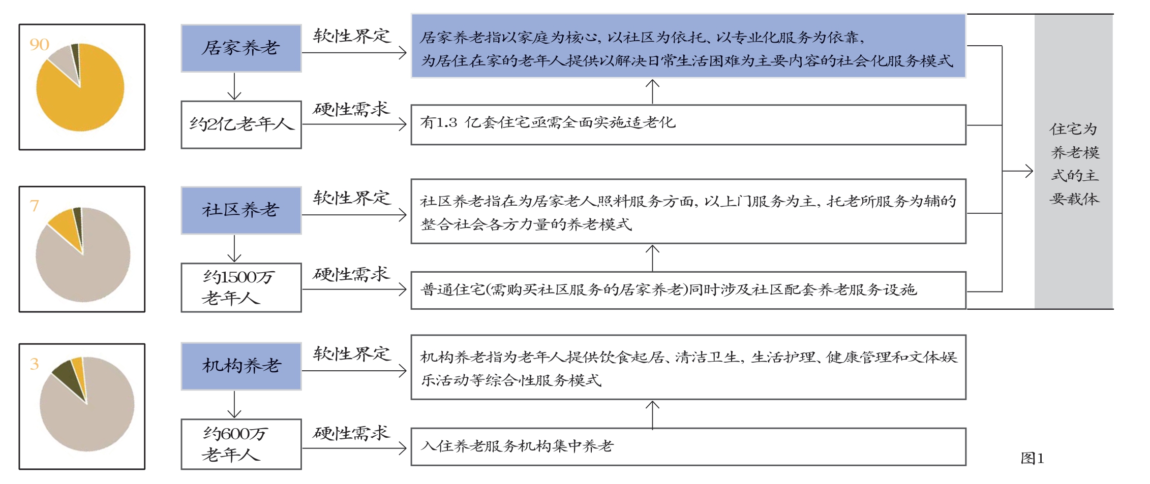 ■图1 9073政策下的三种养老模式