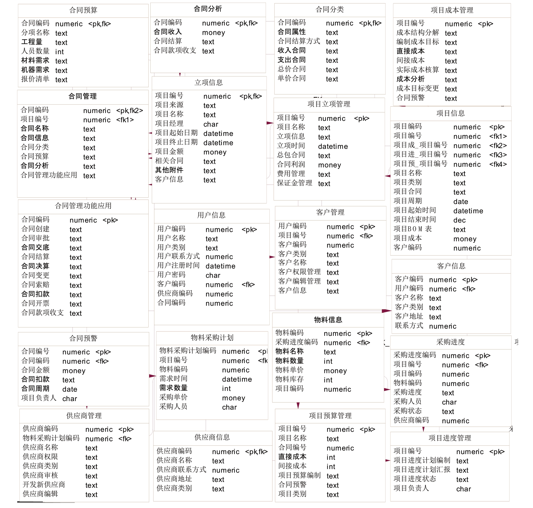 4)合同管理模块:该模块主要有采购合同,买卖合同和技术合同等。
