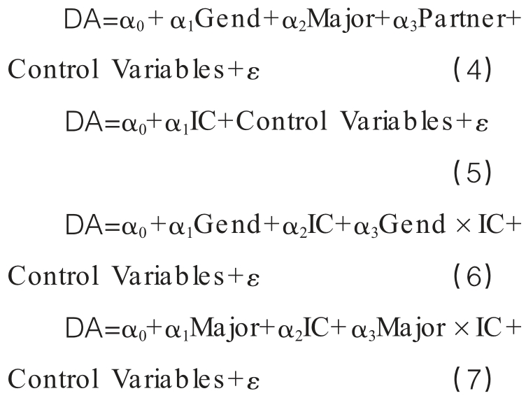 本文借鉴张凤丽和陈娇娇[5]、郭春林[15]等的研究,选取性别、专业、级别作为解释变量。
