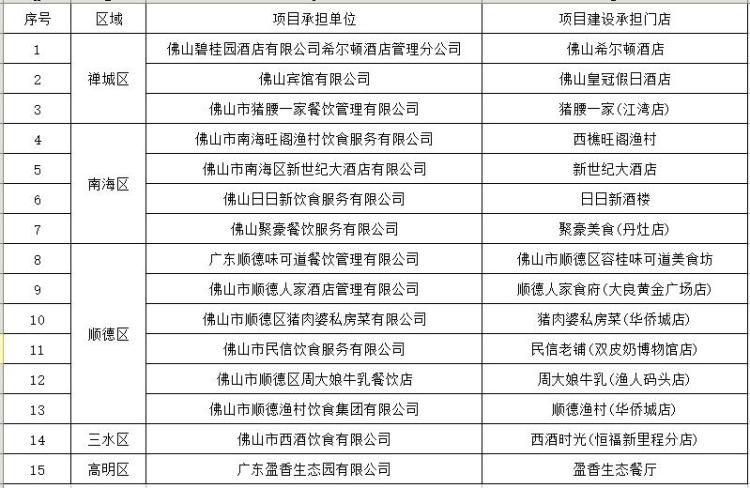 佛山市首批粤菜标准化示范企业项目名单如下: