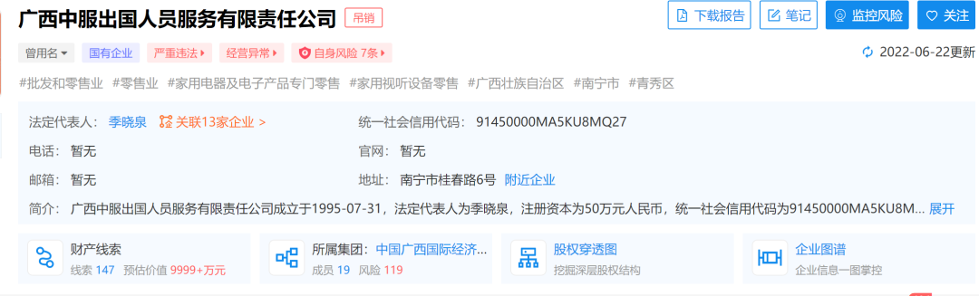 如果细致查看这些公司,不难发现其中的关联情况十分普遍。 “ 律师提示 精密布局 伪造绝非止于一桩 赵伟喆律师提示,这类伪国企在进行工商注册前一般都会经过精密的布局,注册不会仅注册一家公司,一旦落实行动通常会设置一系列关联公司,以期达到效益最大化。而这一系列注册行为通常伴随着一个伪造公司成立后,在几个月内就会完成下级新投资公司的注册。 复杂的关联 九子同出一“母” 江西衡新健康产业有限公司与国材(天津)大健康产业发展有限公司均为上海益鑫商务有限公司的下属投资单位,而江西衡新健康产业有限公司又对外投资了上海东贤电子商务有限公司、江西梦舟供应链管理有限公司、上海兆山实业发展有限公司;广西聚贝信息科技有限公司则是由上海东贤电子商务有限公司投资。另一方面,杭州鼎笑、漯河市鸿龙农业科技则是由上海兆山实业投资。中康国健则是由国材(天津)投资。说起来很绕口,图示表示一目了然。 如图所示,9家伪主体从第三方企业信息网上所查,均为上海益鑫商务有限公司“所生”。但让人奇怪的是,上海益鑫并未在公布的伪造子公司名单中出现。而其所有下级公司均在伪主体中上榜。不知其中到底有多少故事?究竟是员工私刻印章,还是此根也是不正,让人浮想联翩。 但该公司并未发布任何声明,国药方面也未对此做出表示。当然,小编也并未找到关于该系列公司与国药之间对簿公堂或是上级公司与工商部门对簿公堂要求撤销注册等案件的信息。所以无法做出更为准确的分析。 另一方面,还有一个关联也比较有意思。一人分饰2角色,一正一邪! 一人分饰2角? 是真还是假 清单中广西中服出国人员服务有限责任公司,第三方企业信息查询网站目前已显示为吊销状态。 法定代表人,季某,关联多家企业。其中一家颇为引人注目,那就是广西国宏经济发展集团有限公司。季某除了担任广西中服的法人与董事长外,还担任广西国宏的董事。 而广西国宏为广西国资委下属国有企业。 这错综复杂的关系,还真是不容易分出真假。如果国药集团未发布这个披露伪主体的公告,从法人兼任地方国资委的董事这一情况来看,估计不少人要相信这个主体的国企身份了!
