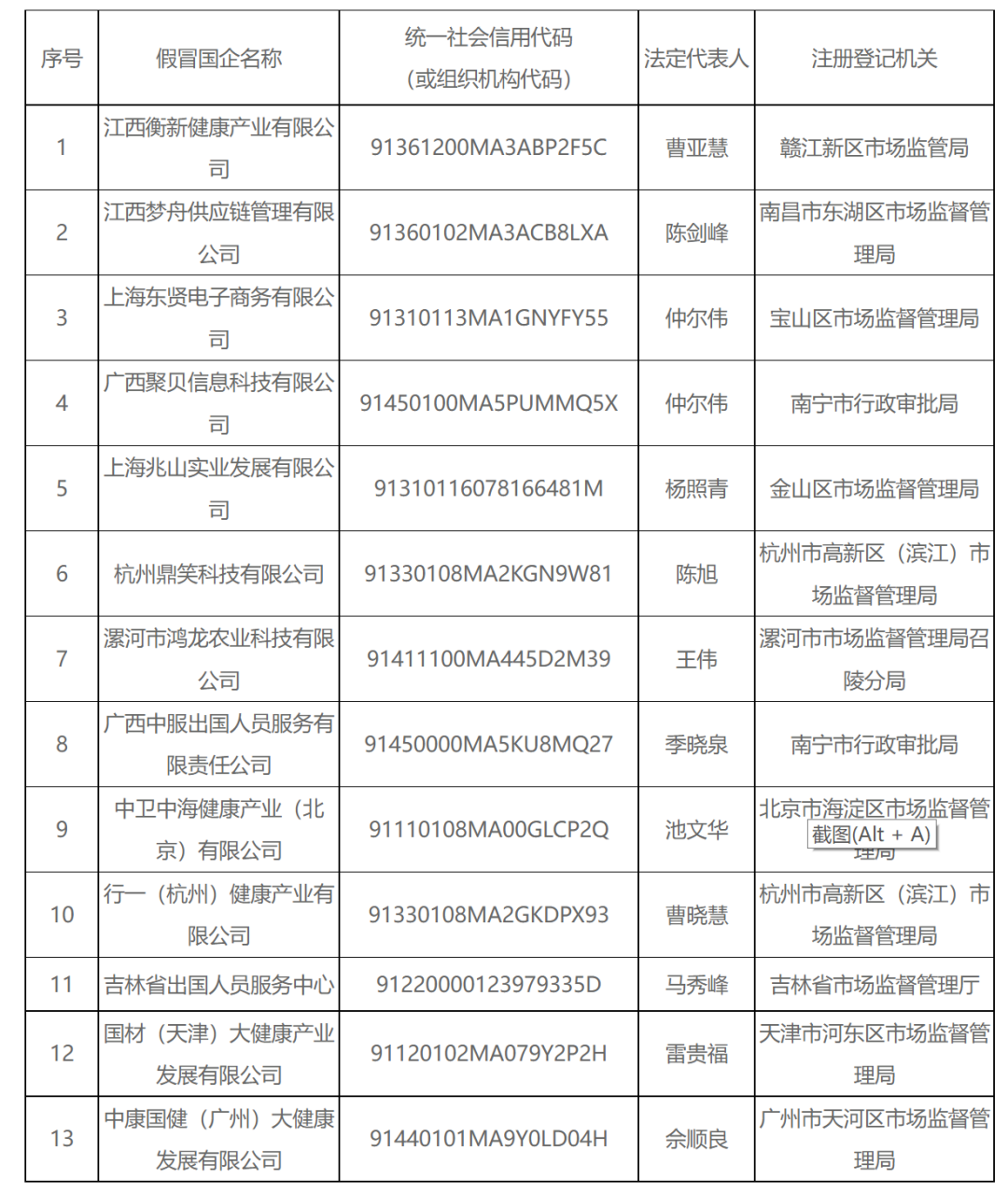 公告称,长期以来,有不法分子通过伪造相关材料等方式,将企业注册为我集团下属子公司,以我集团下属子公司名义开展业务。经我集团核实,以下公司及其下设各级子公司均为假冒国企,与我集团无任何隶属或股权关系,也不存在任何投资、合作、业务等关系,其一切行为均与我集团无关。请社会各界提高警惕,注意防范风险,如发现其违法犯罪行为,请尽快到公安机关报案。