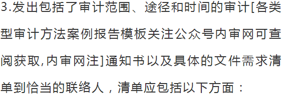 3.对支持人力资源流程的信息系统的可靠性和质量进行评价。1.和内部审计经理召开计划会议,对范围、方法和时间进行讨论,确定被审单位的期望;确定恰当的联络人。B 考虑在计划和执行审计阶段和人力资源专家讨论的必要性;C 和审计组其他成员讨论他们在这个领域已经完成的工作;D 了解人力资源最佳实务,另外查阅以前有关人力资源方面的审计报告;E 查阅永久的政策和程序,例如书面的规定,以获得全面的了解。E 进入人力资源系统的用户名(此处理解为独立查询账号,内审网注)和密码;4.计划和召开和人力资源经理的见面会,重新说明审计范围和时间安排,确保上述事项的恰当,并且达到了人力资源职能和内部审计职能的要求。确定交流会议的时间表以及沟通方式。A 是否使用了新雇员文件清单来保证所有必须的文件都已取得并保存在员工档案中;D 新员工的档案是否被复核以保证所有的文件均已保存在档案中;3.查阅人事招聘报告,并且随机选择15 个新雇员样本进行测试:A 追踪新员工信息到员工档案的支持文件和在线系统,确保信息的一致;C 确保人力资源部门及时地将新雇员的附加信息输入到系统;