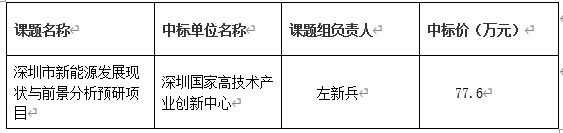 12、深圳市新能源发展现状与前景分析预研项目中标公告。