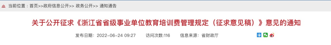 根据我省行政规范性文件制定管理的相关规定,现将《浙江省省级事业单位教育培训费管理规定(征求意见稿)》予以公布,征求公众意见。如有修改意见或建议,请于公布之日起7个工作日内通过电子邮件、传真、信函等形式反馈至浙江省财政厅科教处。