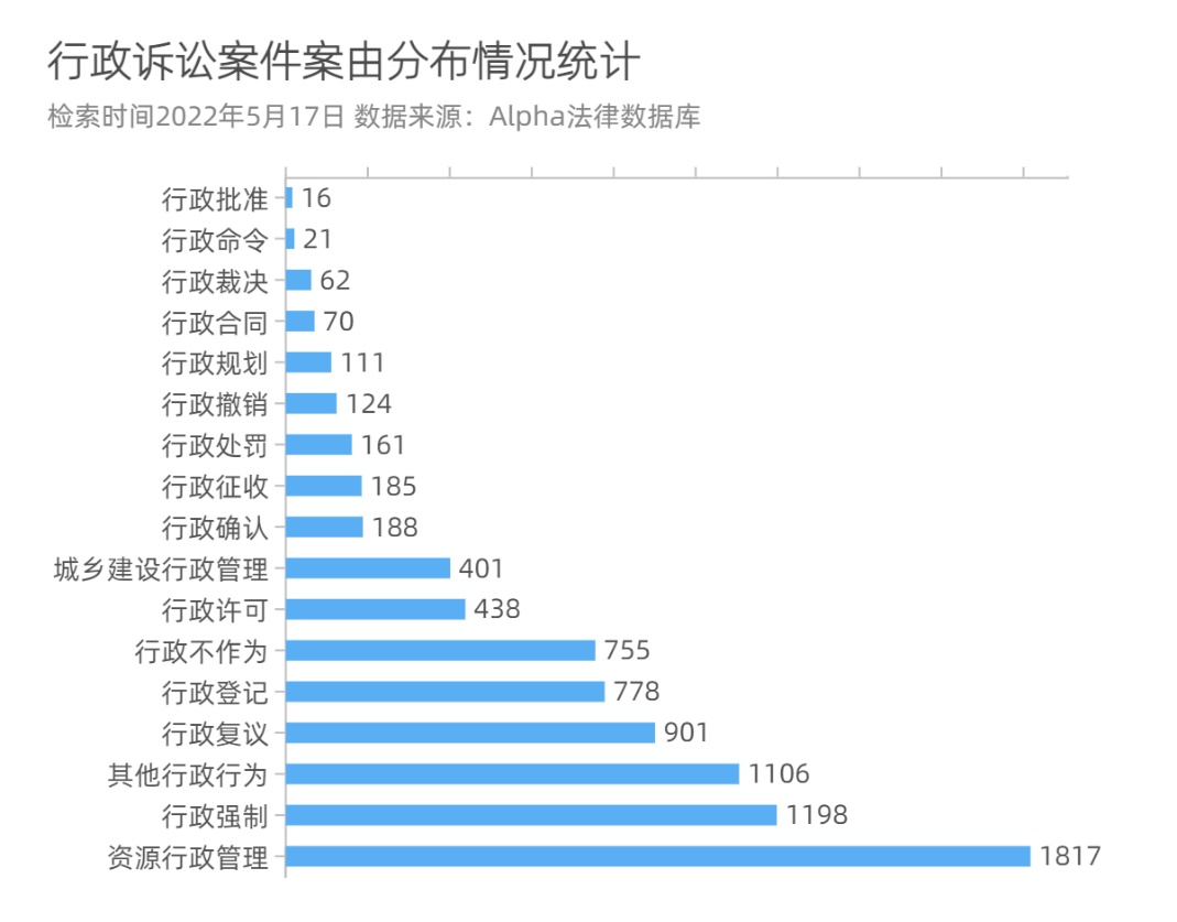 以上案由分布情况显示,行政合同(协议)案由项下的案件非常之少,数量远远少于资源行政管理类、行政强制类、其他行政行为类、行政复议类等案由的案件数量。