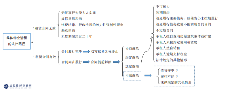 在集体物业清租中,若承租人违约的,出租人可依法解除租赁合同。但若在租赁有效期内,承租人无违约行为的,出租人能否作为违约方单方面解除租赁合同呢? 对于违约方合同解除权的问题,理论届和司法实践中均存在两派观点。否定论认为,违约方不应享有合同解除权,一方面因为不符合诚实信用等合同精神,且不符合我国现行法的规定,另一方面因为合同解除利益攸关,赋予违约方解除权或使社会秩序受到不利影响或遭到破坏[1]。而肯定论认为,在特定情形下法律应当赋予违约方合同解除的权利,允许违约方以损害赔偿代替继续履行,理由例如:应尊重合同的效率价值,允许违约方在特定情况下摆脱合同约束,以避免遭受非常大的经济利益损失;王轶教授认为,当合同履行出现僵局时,应像允许公司僵局一样,赋予法院或仲裁机构根据违约方的请求“解除合同”这一外在干预的权力,同时予以严格限制;又如,以损害赔偿代替继续履行具有实质意义,既有利于避免出租人利益因合同继续履行而大幅减少,也有利于保证承租人的既得利益[2]。 总结可知,大多数情况下违约方不享有合同解除权,但若满足某些特定情形,违约方主张司法解除合同也可能得到法院支持。王立明教授认为,如能证明合同无法履行,或继续履行在经济上明显不合理,或合同目的不能实现的,违约方可请求司法解除合同[3]。当然,司法解除不同于法定解除,法定解除中当事人一方只需通知对方即可发生合同解除的效力,而司法解除只是为塑造更为理想的合同关系和合同秩序增加了一种可能性,解除与否还需司法机构根据法律规定和合同实质来判定。下文将从情势变更(经济效益性)和履行不能(履行可能性)的角度出发,探析出租人违约解除租赁合同的可能性。 《民法典》第五百三十三条规定了情势变更制度,在满足特定条件的前提下,赋予受不利影响的一方司法解除合同的权利,该特定条件包括:合同成立后,合同的基础条件发生了当事人在订立合同时无法预见、不属于商业风险的重大变化,继续履行合同对于当事人一方明显不公平,且受不利影响的一方与对方重新协商无果。实操中,就出租人能否主张城市更新属于情势变更、继续履行合同会导致经济利益减损的问题,我们先来看两个案例: 案例1:马锐明、马顺英、马桂明与广州开发区土地开发储备交易中心、广州市黄埔区人民政府九佛街道办事处、知识城(广州)投资集团有限公司履行行政协议一案(案号:(2020)粤71行终1278号) 法院认为:“本案中,上诉人基于家庭人口增加、原有安置面积无法保证居住权为由,请求增加购买安置房的面积,而上诉人家庭人口的自然增长,显不属于订立合同时无法预见的重大变化;涉案补偿安置协议中并未约定安置房的交付使用时间,但约定了安置房未交付使用期间被安置人可按月领取临迁补助,故继续履行涉案补偿安置协议并未造成对上诉人一方的明显不公平。综上,上诉人以情势变更为由请求变更涉案补偿安置协议的诉请不能成立,本院不予支持”。[4] 案例2:深圳市宝安华丰实业有限公司与人人乐连锁商业集团股份有限公司租赁合同纠纷案(案号:(2015)深宝法西民初字第2085号) 法院认为:“司法实践中对于适用情势变更原则采取审慎的态度从严把握,就本案而言,被告提供的证据虽可证明相关片区的旧城改造工程对涉案物业的经营环境造成了一定程度的不利影响,但尚不足以据此得出合同目的无法实现而应予解除的结论。结合涉案的租赁物业并未纳入旧改范围、租赁物并未毁损灭失以及周边仍有其他商家正常经营等具体案情,本院倾向于认为被告依据情势变更原则主张解除合同的依据并不充分。综上分析,本院认为被告于2015年3月1日发出的《解除房产租赁合同通知书》不发生法律效力,双方之间的租赁合同关系并未因此而解除”[5]。 从以上案例可以看出,法院对于情势变更的认定严格且审慎,大多数法院都倾向于认为城市更新不属于情势变更的情形。此外,《关于正确适用<中华人民共和国合同法>若干问题的解释(二)服务党和国家的工作大局的通知》(现行有效)第二条规定,各级人民法院须正确理解、慎重适用情势变更制度,如果个案确需适用的,应由高级人民法院审核,必要时应报请最高人民法院审核。可见,情势变更的认定程序非常繁琐不便。 相关法条 1.《民法典》第五百三十三条 合同成立后,合同的基础条件发生了当事人在订立合同时无法预见的、不属于商业风险的重大变化,继续履行合同对于当事人一方明显不公平的,受不利影响的当事人可以与对方重新协商;在合理期限内协商不成的,当事人可以请求人民法院或者仲裁机构变更或者解除合同。 人民法院或者仲裁机构应当结合案件的实际情况,根据公平原则变更或者解除合同。 2.《关于正确适用<中华人民共和国合同法>若干问题的解释(二)服务党和国家的工作大局的通知》第二条 对于上述解释条文,各级人民法院务必正确理解、慎重适用。如果根据案件的特殊情况,确需在个案中适用的,应当由高级人民法院审核。必要时应报请最高人民法院审核。 刘贵祥法官认为,在合同不能实际履行时,由违约方行使解除权是一种优化市场资源配置的及时处理方式[6]。《民法典》第五百八十条规定,因法律上或事实上不能履行合同、债务不适于强制履行等原因,致使不能实现