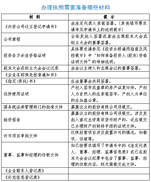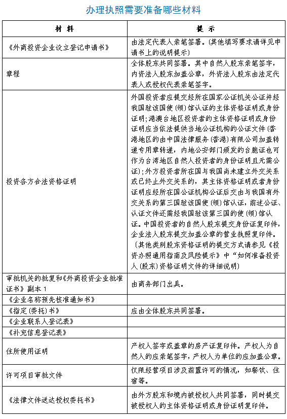 1、企业名称6到8个见《如何办理名称预先登记》如北京XXX科技发展有限公司=XXX(北京)科技发展有限公司: 2、合法开业证明: A、自然人股东护照(所在国发的)复印件及中文译件5份(必须有所在国的公证和中国驻该国使领馆的认证); B、有企业股东的,提供该企业营业执照复印件/商业登记证复印件及中文译件5份(必须有所在国的公证及中国驻该国使领馆的认证); C、投资各方的合法资格证明(外国投资者应提交经所在国家公证机关公证并经我国驻该国使(领)馆认证的主体资格证明或身份证明;港澳台地区投资者的主体资格证明或身份证明应当依法提供当地公证机构的公证文件(香港地区的由中国法律服务(香港)有限公司加盖转递专用章转递,内地公安部门颁发的台胞证也可作为台湾地区自然人投资者的身份证明且无需公证);外方投资者所在国与我国尚未建立外交关系或已终止外交关系的,其主体资格证明或者身份证明应经所在国公证机构公证后交由与我国有外交关系的第三国驻该国使(领)馆认证,前述公证、认证文件还需经我国驻该第三国的使(领)馆认证。)