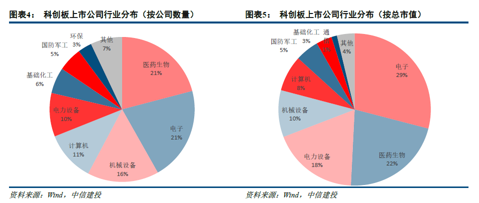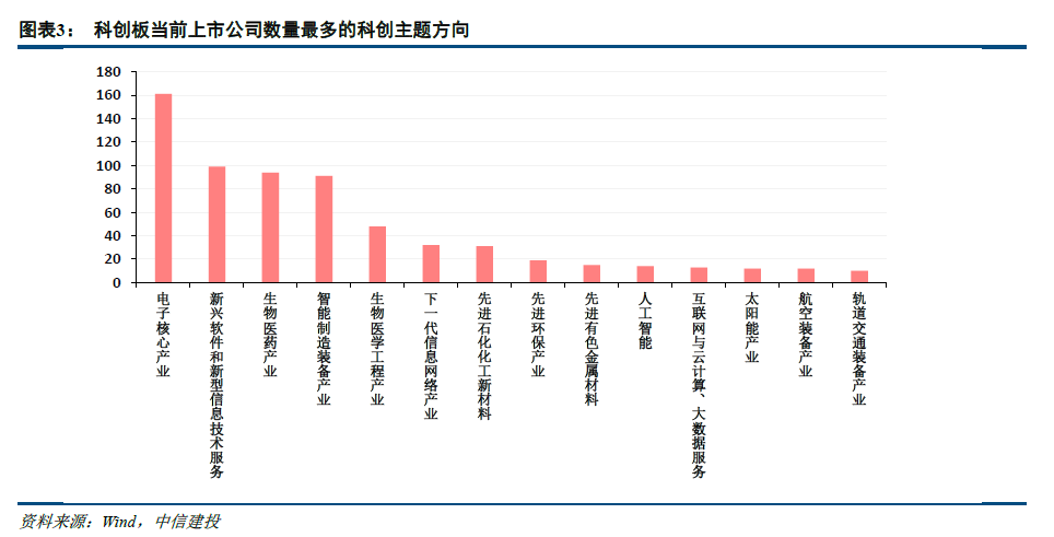 硬科技成色突出,“试验田”作用彰显。科创板,作为我国多层次资本市场建设中的一部分,顾名思义就是为中小型科技创新企业提供直接融资渠道、降低融资成本的支持手段之一。从科创板的基本定位来看,《上海证券交易所科创板企业发行上市申报及推荐暂行规定》中提到,符合科创板行业定位的高兴技术产业和战略新兴产业领域有:新一代信息技术领域、高端装备领域、新材料领域、新能源领域、节能环保领域、生物医药领域以及符合科创板定位的其他领域。通过梳理目前科创板上市公司数量最多的科创主题方向,可以看到电子核心产业、新兴软件和新型信息技术服务、生物医药产业以及智能制造装备产业是数量排名靠前的四个方向,这些正是我国目前面临核心技术“卡脖子”问题相对比较严重的领域,科创板支持有关核心领域技术攻关、加速“国产替代”、“自主可控”进程的作用彰显无疑。