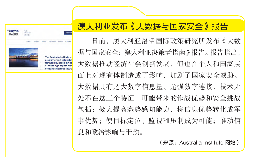 | 澳大利亚大数据与国家安全当前您所在的位置:首页 > 产服 > 数据经济与网安 > 数字安全