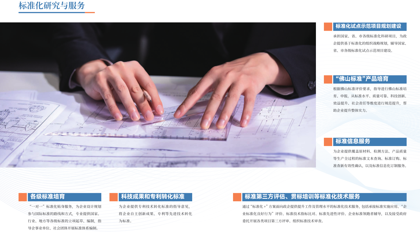 目前具有能源检测实验室CMA资质认定证书、通过ISO9001质量管理体系认证,是全国轮椅车标准化分技术委员会秘书处承担单位、全国标准化良好行为评价机构(1-5A),为广东省中小企业服务示范单位、广东省中小企业公共(技术)服务示范平台、广东省冶金及工贸企业安全生产标准化二级企业评审单位、广东省节能技术服务单位、广东省清洁生产技术服务单位、粤港清洁生产伙伴计划环境技术服务供应商、广东省第三方节能量审核机构、广东省锅炉能效测试服务机构、广东省固定资产项目节能评估机构、广东省资源综合利用产品工艺质量检验检测机构、广东省工业固体废物资源综合利用评价机构、佛山市医药行业专业技术中级职称评审委员会办公室。