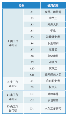 工作许可证。阿尔巴尼亚工作许可证分为4 类(详见表4),一般在申请人提交申请后30 天内签发。