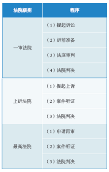 阿尔巴尼亚诉讼为三审终审制,企业如在阿发生商事争议,可先向一审法院提起诉讼请求,如对一审判决不服,可向上诉法院申请上诉,如对上诉法院判决仍不服,可向最高法院申请再审。