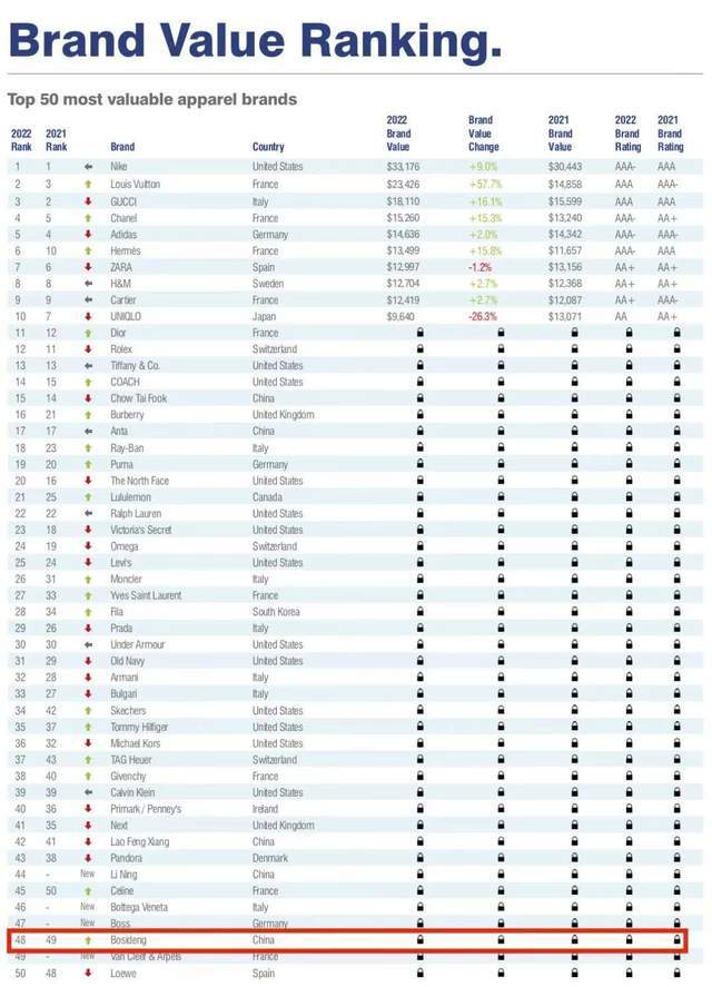 2022全球最有价值50强服饰品牌榜单,主要关注的2021年,是中国国产运动品牌全面爆发的一年。