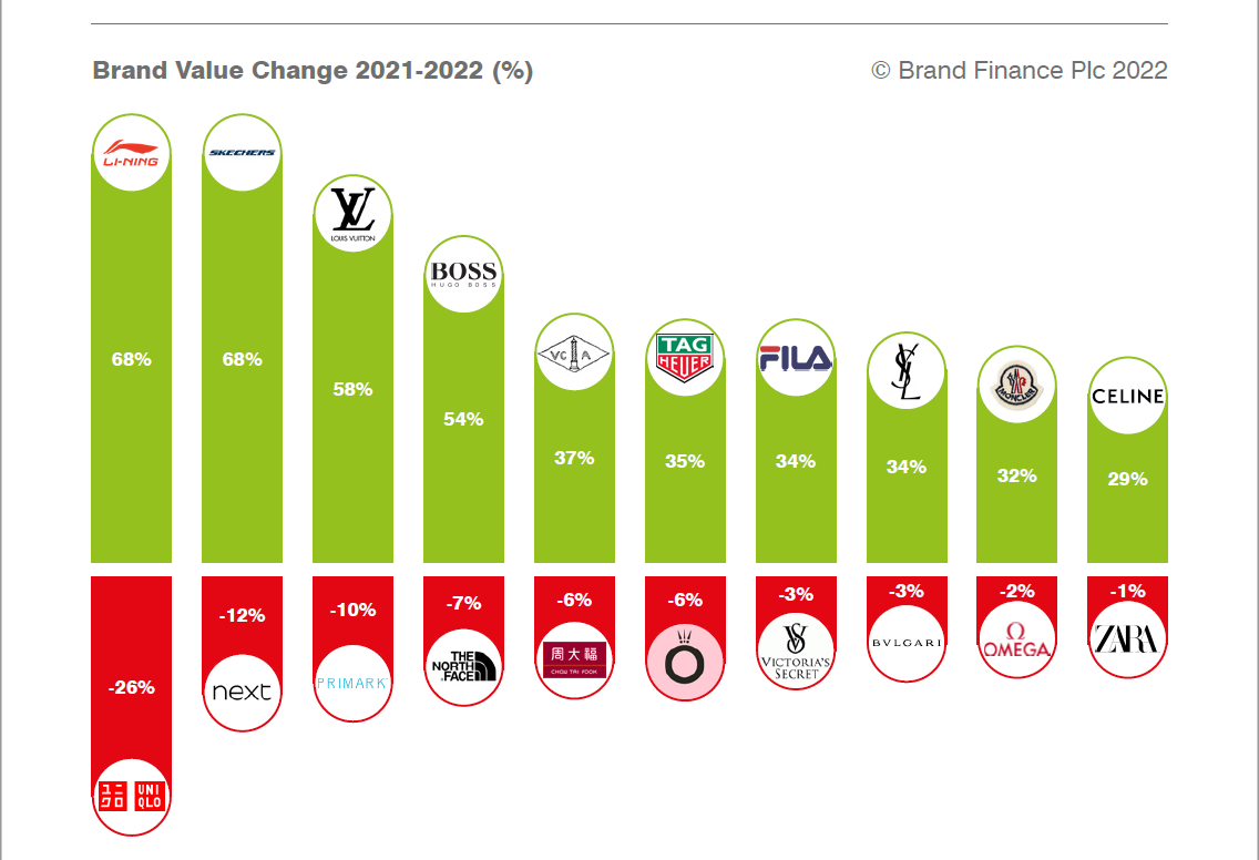 2022年4月中,国际著名市场调研机构Brand Finance发布了“2022全球最有价值50强服饰品牌榜单“(Brand Finance Apparel 50 2022)。