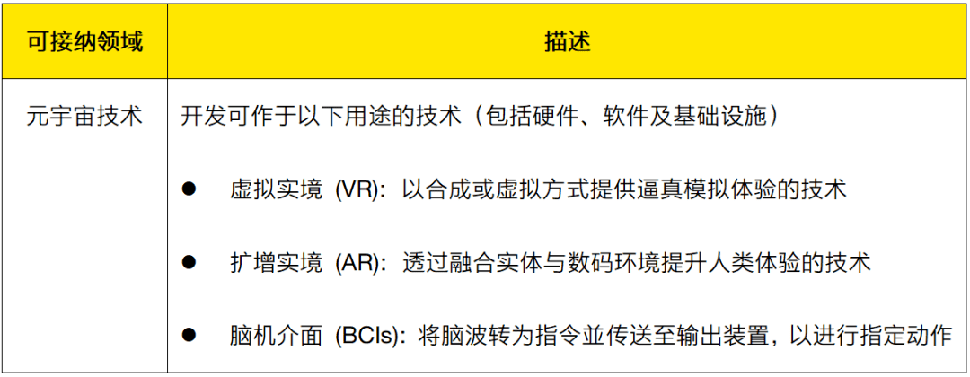 18C章列示的元宇宙技术的可接纳领域范围如下图所示: