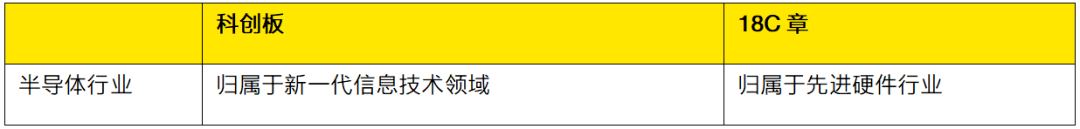 18C章与科创板对于半导体行业的定位情况如下表所示: