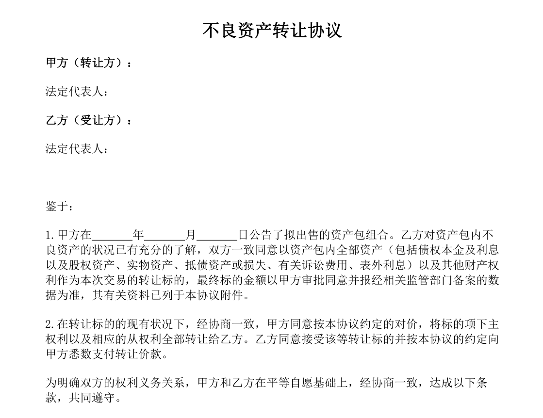| 不良资产转让协议当前您所在的位置:首页 > 管理 > 并购重组 > 不良资产处置