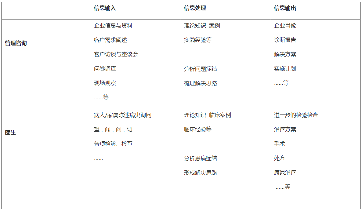 我们从信息处理的过程看咨询师和医生两种职业的共同点。