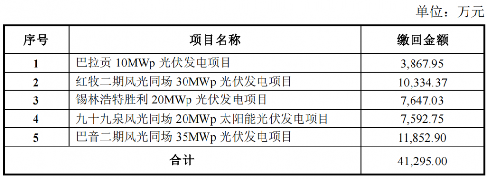 2022年10月28日,太极实业发布公告:公司投资的5个项目在名单中,共退回补贴资金4.1295亿元,具体如下表所示。