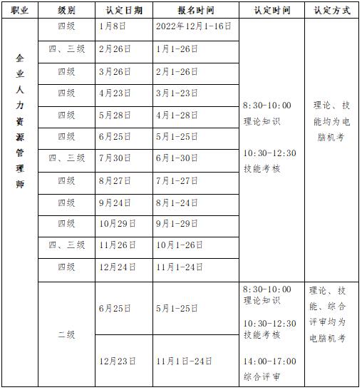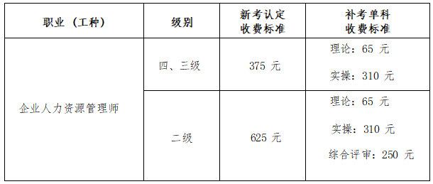 认定职业 (工种) 范围包括:企业人力资源管理师 (四级、三级、二级)