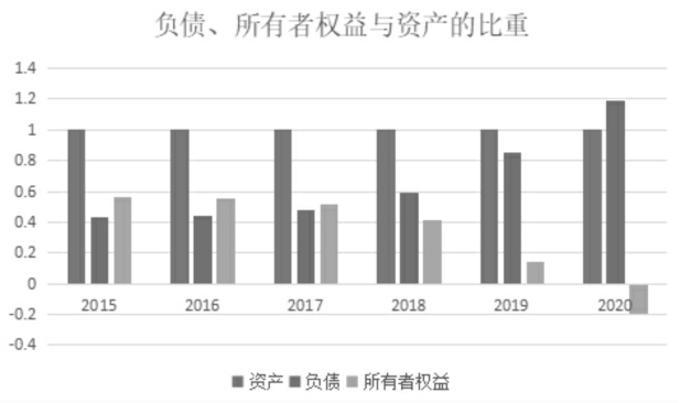 1.财务方面。拉夏贝尔的偿债压力可以从企业的资本结构以及财务指标进行评价。首先是拉夏贝尔的资本结构。分析企业资本结构可知,拉夏贝尔在2018年以前资产和所有者权益的比重大致接近,且资产主要来源于企业内部,质量较好。但在2018年之后,拉夏贝尔大量使用外部资金,负债的占比逐渐增加,2020年甚至达到119.21%,且该年所有者权益的占比为负数,说明拉夏贝尔的资产全部来源于负债,而负债还用于填补所有者权益方面的空缺,拉夏贝尔的资本结构发生了重大变化。在财务指标方面,采用流动比率对拉夏贝尔的偿债能力进行评估。从表1可以看出,拉夏贝尔的流动比率数值自2016年以来逐年下降,2019年降至1以下。2021年的中期报告显示,拉夏贝尔的流动资产为79 352.1万元,流动负债为34 9168.3万元。由此可知,截至2021年6月,拉夏贝尔的流动比率为0.23。公司的流动比率进一步减少,说明公司的偿债能力不断减弱。根据对拉夏贝尔资本结构以及流动比率的计算可以看出,公司的偿债能力存在重大问题。