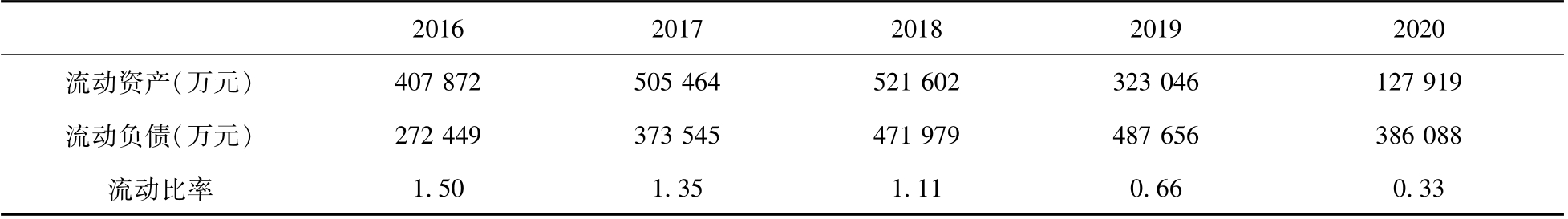 表1 流动比率
