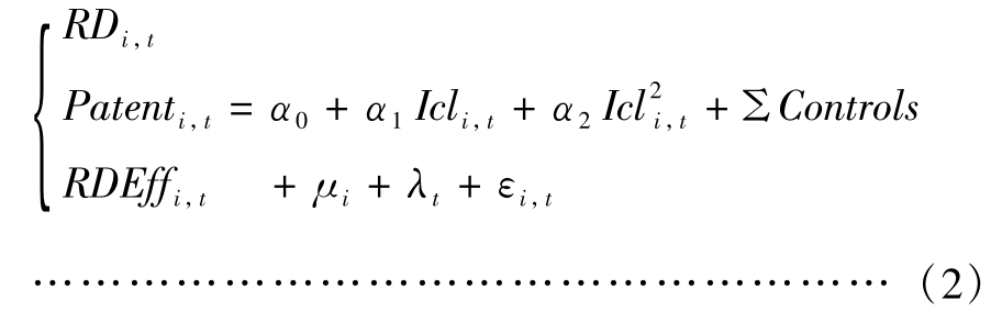 为验证知识产权密集型企业内部控制与创新之间是否存在U型关系,要研究建立非线性回归模型(2)如下: