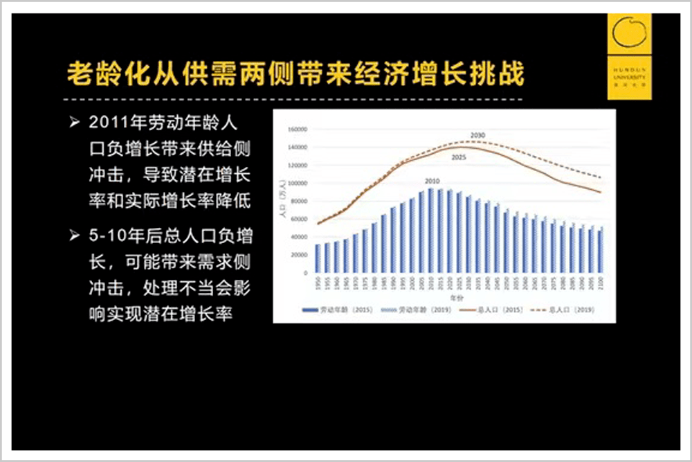 关于后者,则为我们带来三大新国情:中国有最快的老龄化发展速度、规模最大的老年人口群体,以及正在面临的未富先老的现实问题。老龄化问题,从根本上改变了我国长期以来具有的“生之者众,食之者寡”的人口特征,并直接导致经济增速下行——2012年之后,我国经济增速从两位数逐年下行。