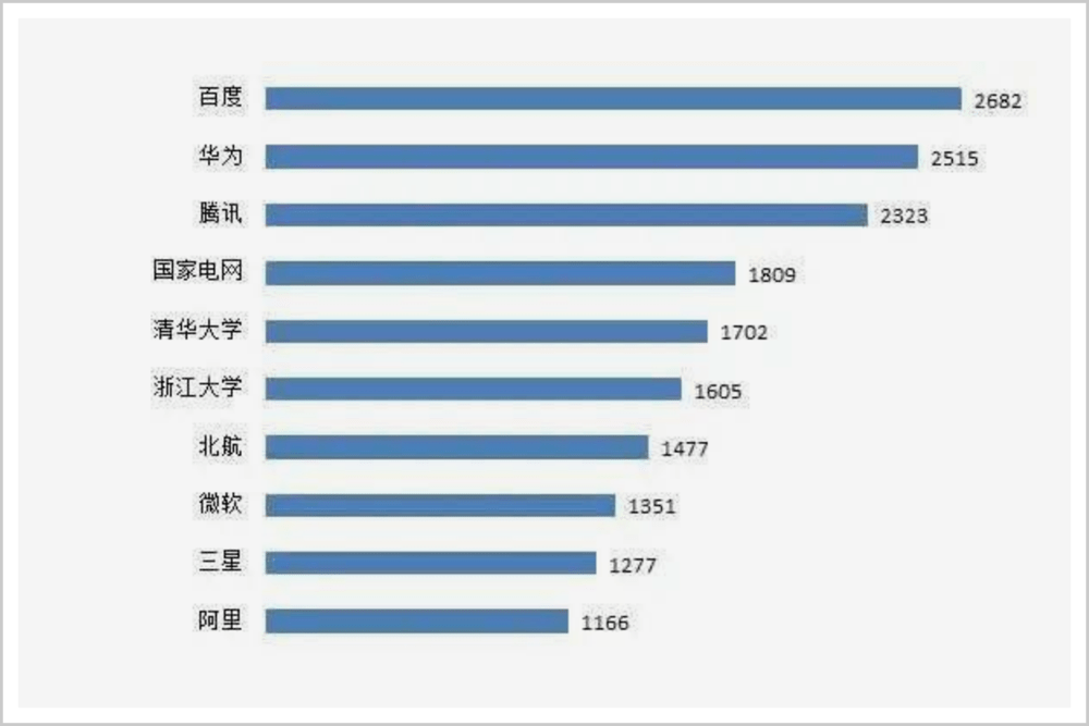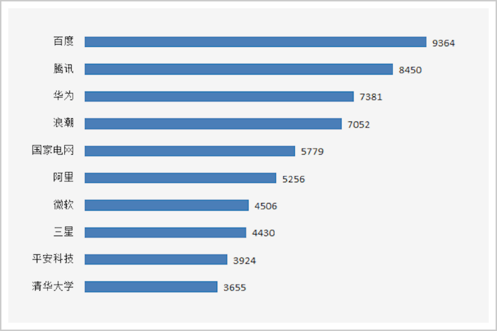 ▲中国人工智能申请人专利申请数量排名(截至2020年10月)来源:《中国互联网发展报告2020》