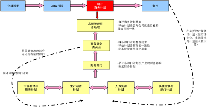 计划上的失败就是计划着去失败……商务计划的准备和过程非常重要。好的商务计划过程通过明确企业目标和关键发展领域,帮助企业所有者和管理层建立掌控全局的思维框架,获得对企业发展方向的控制,实现从战略的高度来管理企业而不是陷入日常经营的细枝末节中。规范的商务计划程序如下: