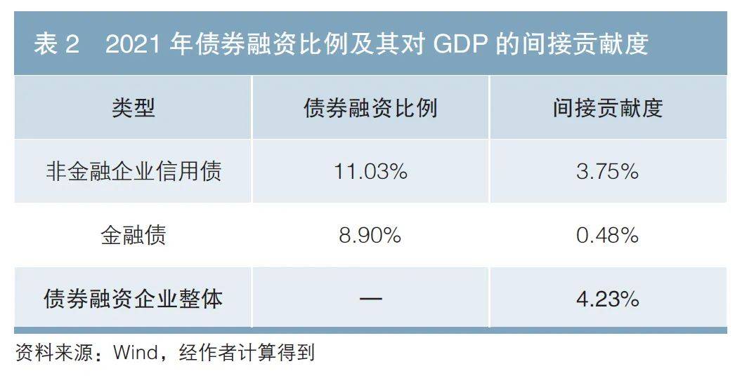 债券融资对GDP的间接贡献度=债券融资企业对GDP的贡献度×债券融资比例