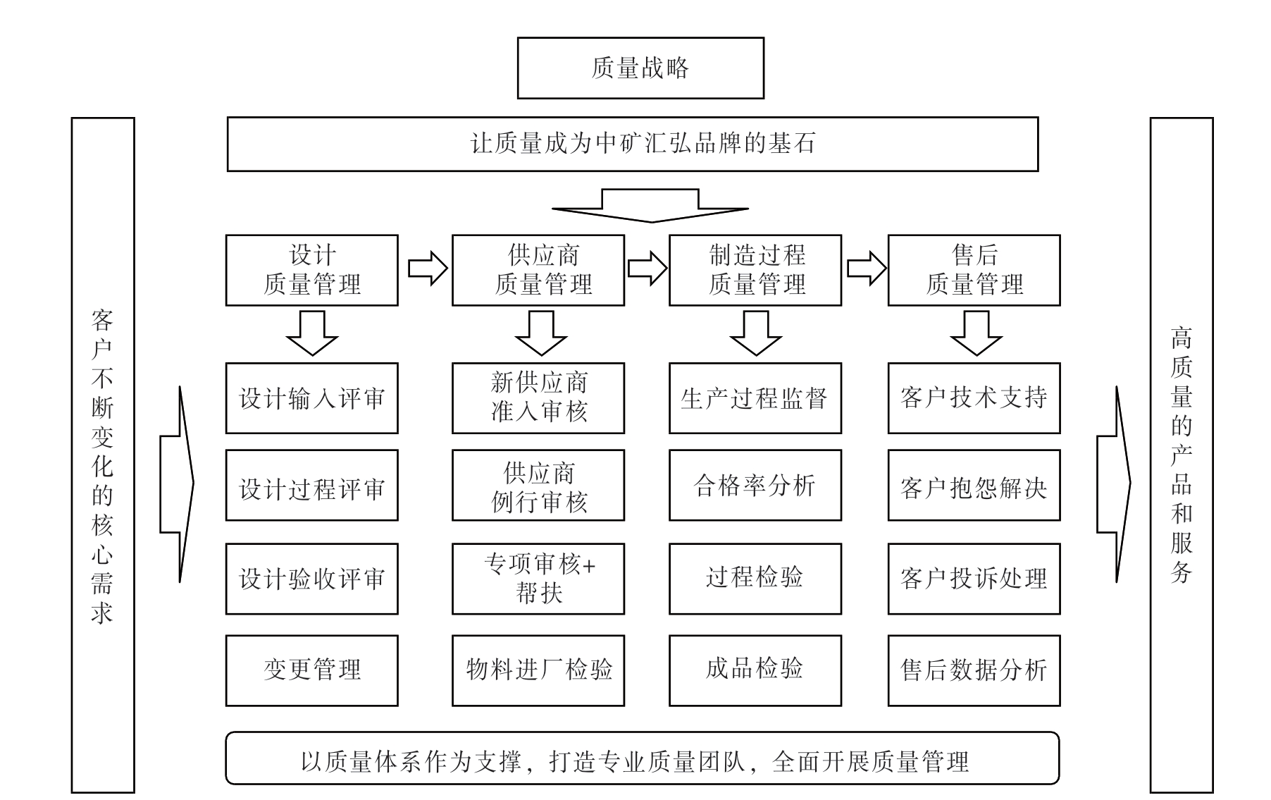 为保证公司战略得到落地执行, 各职能部门要建立自己的部门职能战略作为对公司战略的承接, 质量管理部门要根据公司战略制定质量战略体系架构。 该质量战略体系架构以客户不断变化的核心需求作为输入, 通过对设计、 采购、 制造、售后服务各环节过程的有效管理, 输出高质量的产品和服务。 见图1。 在质量战略体系框架的指引下建立三年战略规划, 明确三年战略总目标。